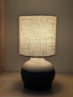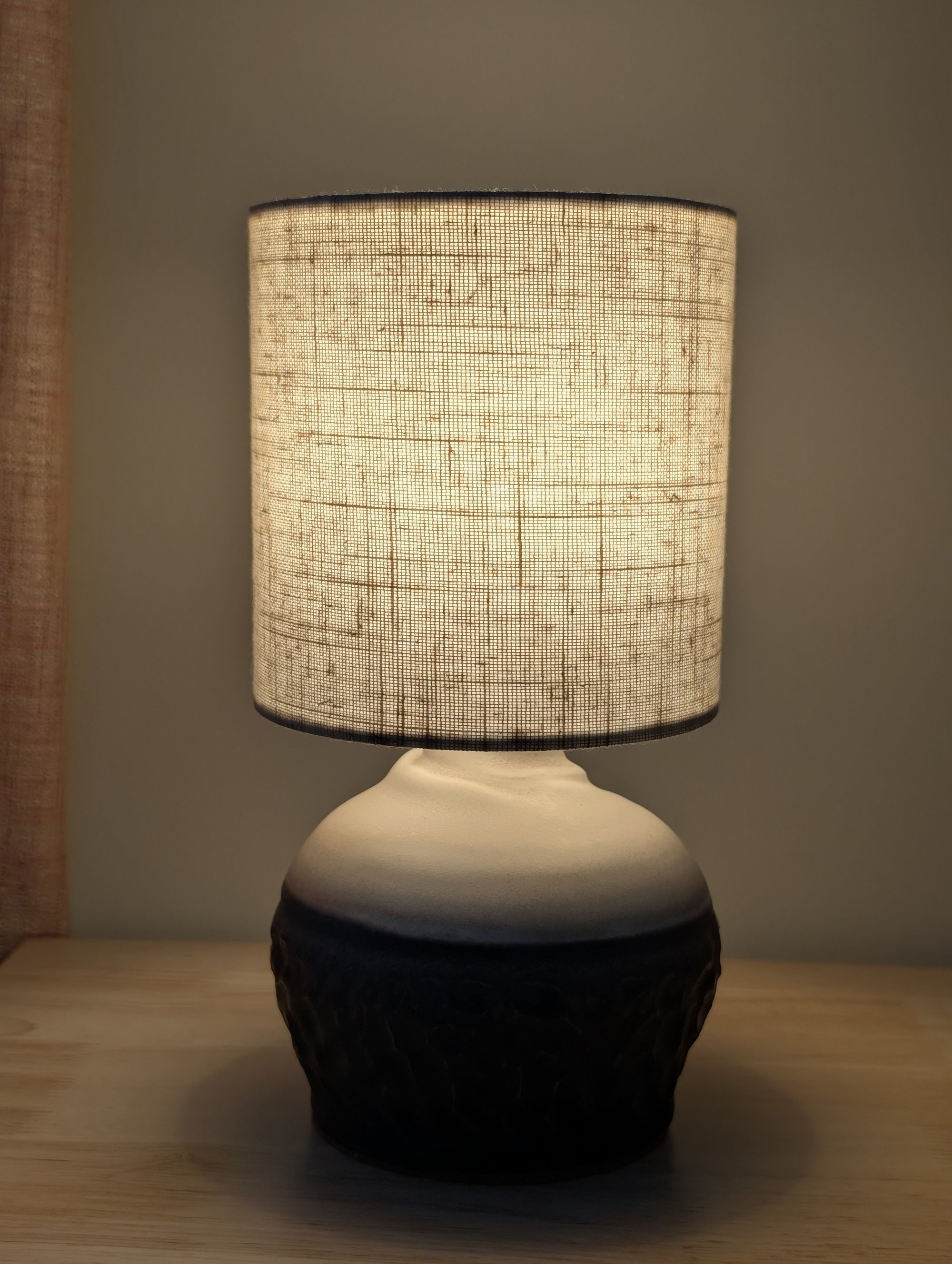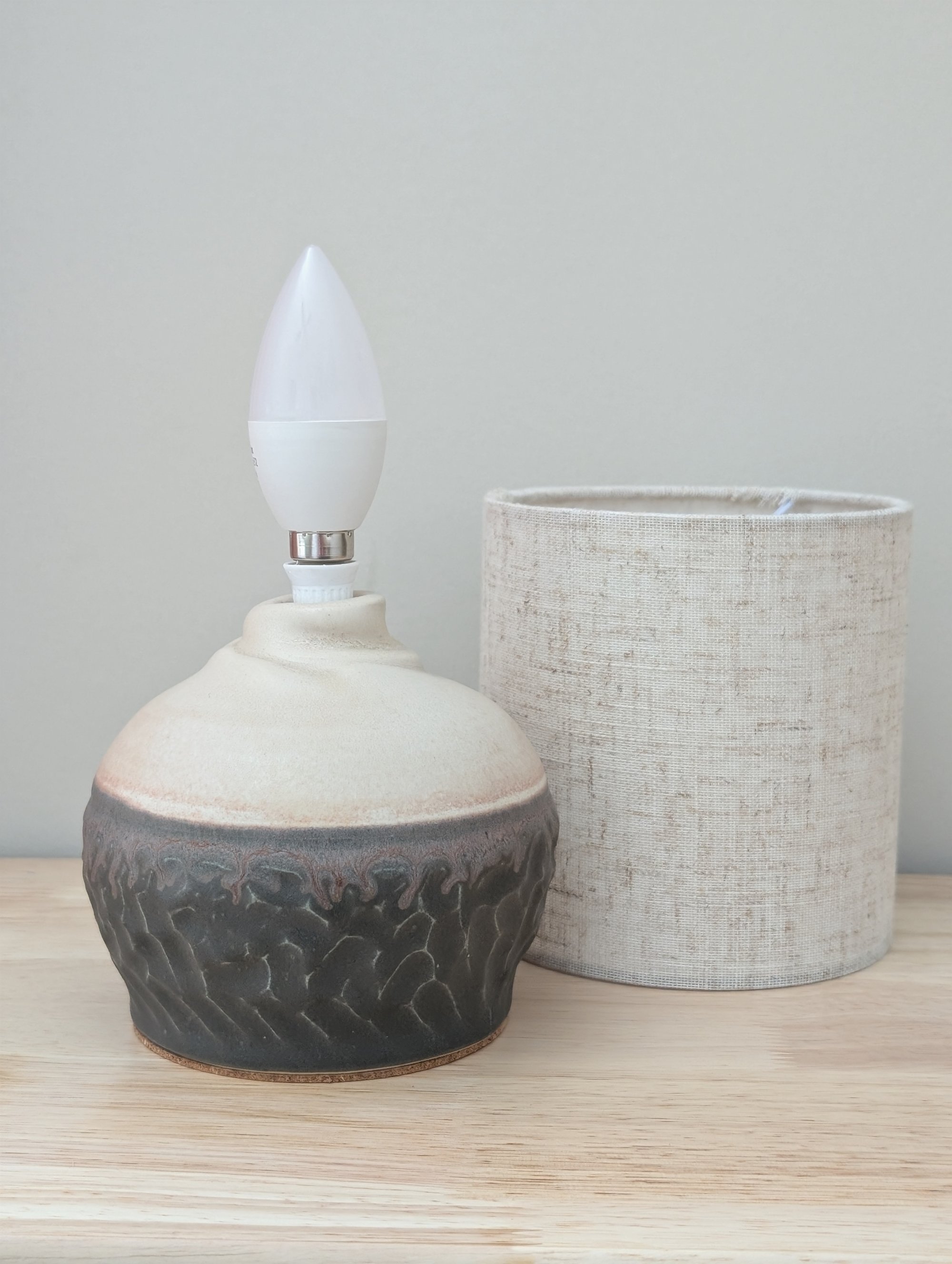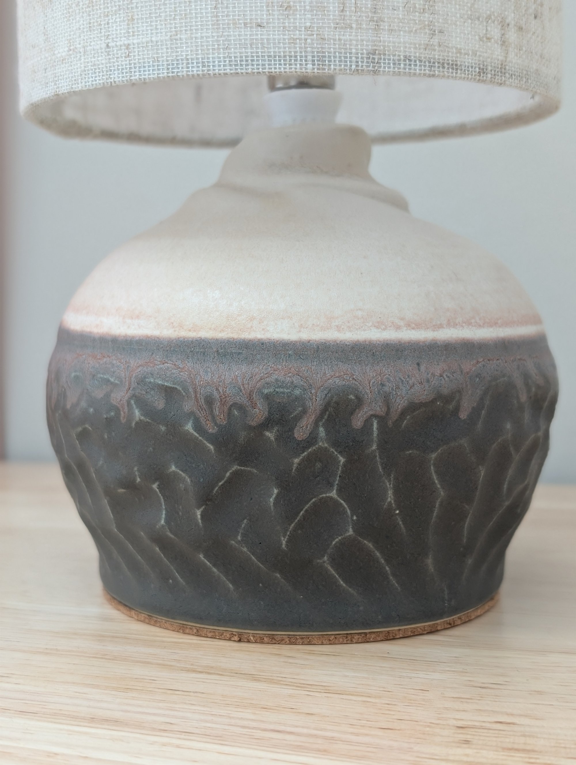 Handmade, wheel thrown desk lamp with overlapping matte glazes