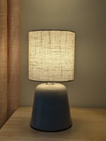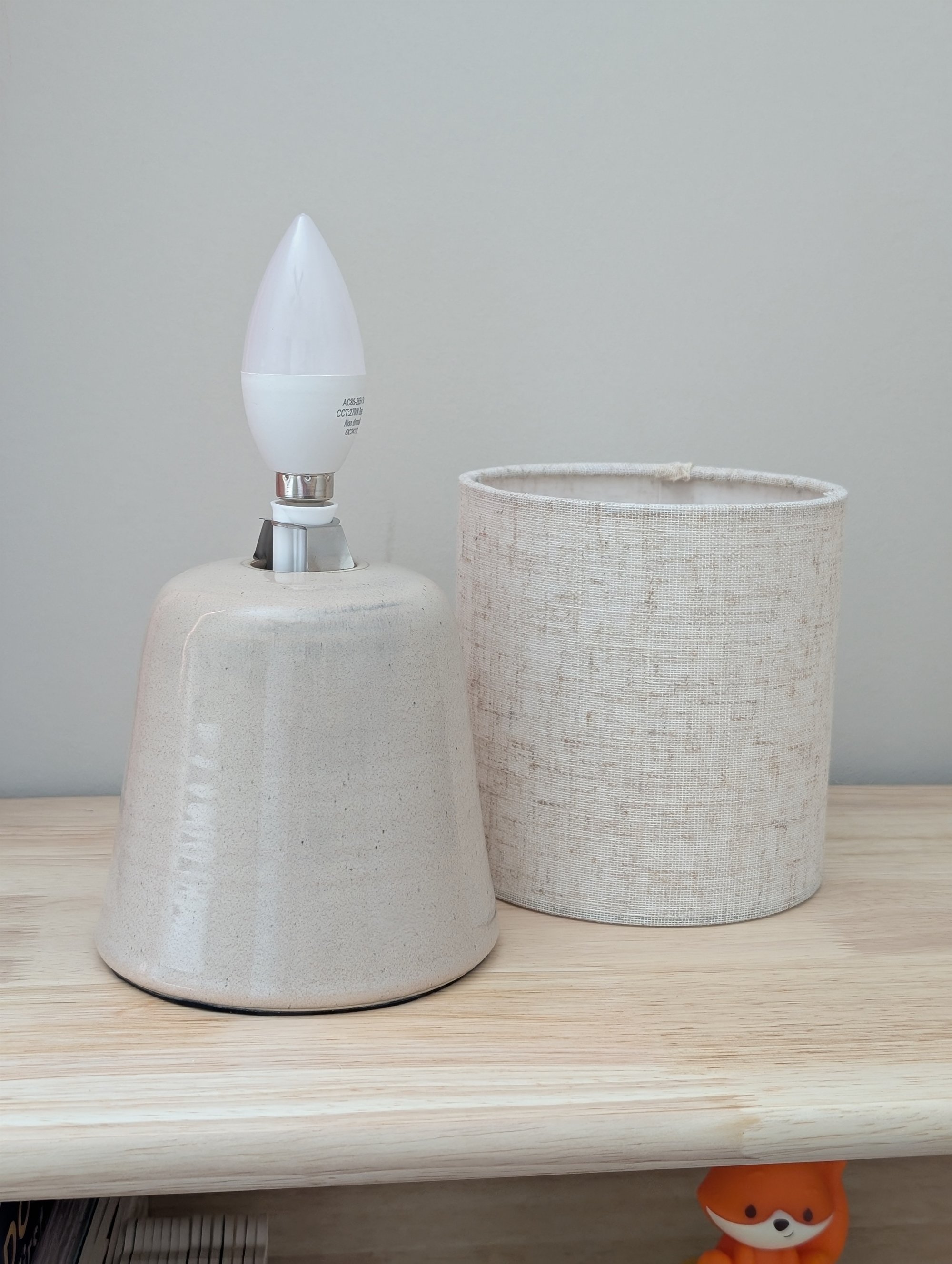 Handmade, wheel thrown desk lamp with a glossy pink shadow glaze
